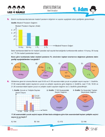 5. Berk’in kumbarasında bulunan madenî paraların değerleri ve sayıları aşağıdaki sütun grafiğinde gösterilmiştir.