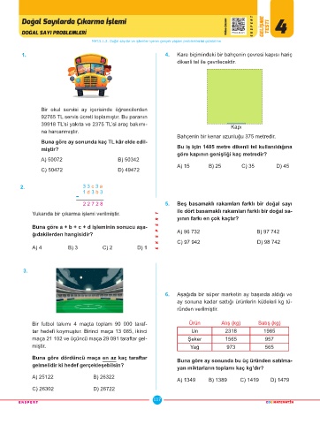 MAT.5.1.2. Doğal sayılar ve işlemler içeren gerçek yaşam problemlerini çözebilme