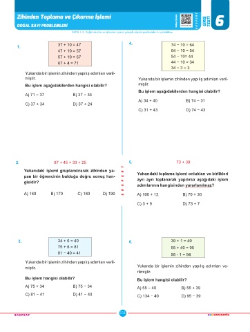 Zihinden Toplama ve Çıkarma İşlemi E K S P E R T 6