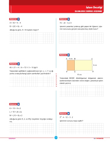 B = (32 + 8) ÷ 4 işlemini parantez yokmuş gibi yapan bir öğrenci, işle-