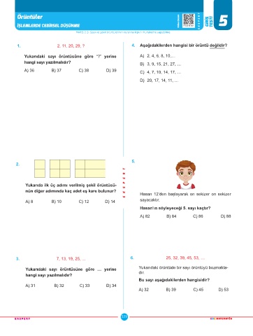 MAT.5.2.3. Sayı ve şekil örüntülerinin kuralına ilişkin muhakeme yapabilme