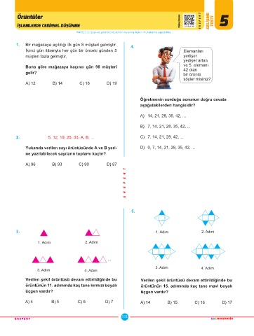MAT.5.2.3. Sayı ve şekil örüntülerinin kuralına ilişkin muhakeme yapabilme