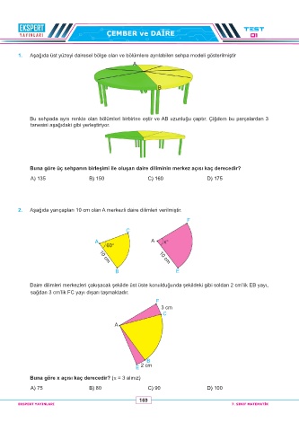 2. Aşağıda yarıçapları 10 cm olan A merkezli daire dilimleri verilmiştir.