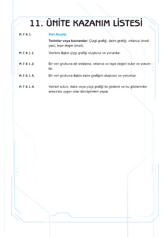 M.7.4.1.2. Bir veri grubuna ait ortalama, ortanca ve tepe değeri bulur ve yorum-