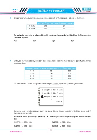 Page 84 - 7. SINIF EKSPERT MATEMATİK