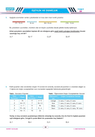 Page 85 - 7. SINIF EKSPERT MATEMATİK