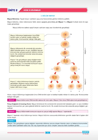 DİKKAT Mayoz bölünmede DNA kendini sadece bir kere eşler. Mayoz 2’den önce DNA eşlenmesi gerçekleşmez.