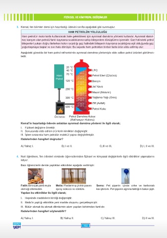 ma; karışım olan petrolü farklı kaynama sıcaklıklarına sahip bileşenlere dönüştürme işlemidir. Gaz halindeki petrol
