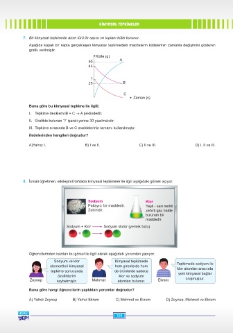 7. Bir kimyasal tepkimede atom türü ile sayısı ve toplam kütle korunur.