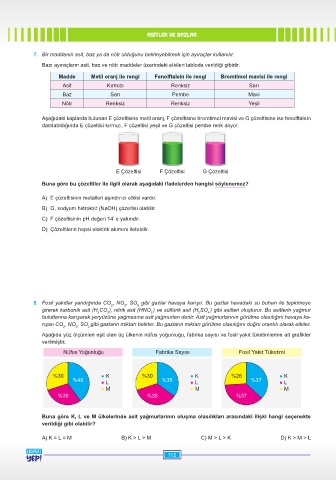 7. Bir maddenin asit, baz ya da nötr olduğunu belirleyebilmek için ayıraçlar kullanılır.