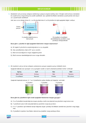 3. Maddelerin asit ya da baz olduğunu belirlemeye yarayan araçlara belirteç denir. Örneğin metil kırmızısı damlatılan