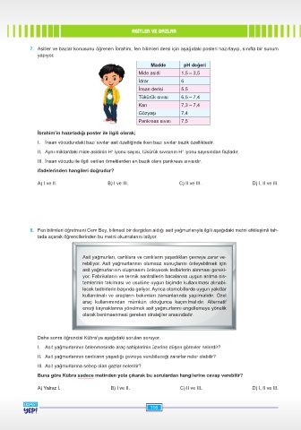 7. Asitler ve bazlar konusunu öğrenen İbrahim, fen bilimleri dersi için aşağıdaki posteri hazırlayıp, sınıfta bir sunum