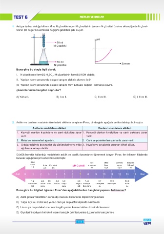 1. Asit ya da baz olduğu bilinen M ve N çözeltilerinden M çözeltisinin tamamı N çözeltisi üzerine eklendiğinde N çözel-