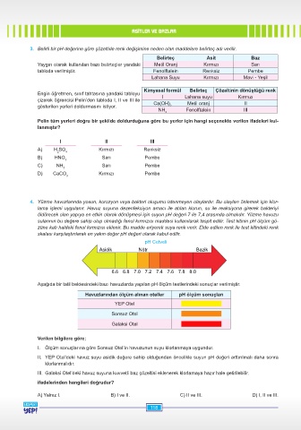 3. Belirli bir pH değerine göre çözeltide renk değişimine neden olan maddelere belirteç adı verilir.