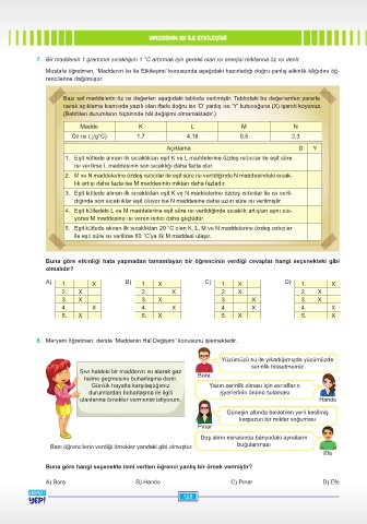 8. Meryem öğretmen, derste ‘Maddenin Hal Değişimi’ konusunu işlemektedir.