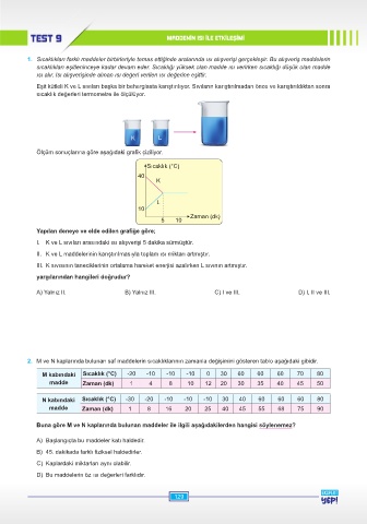 2. M ve N kaplarında bulunan saf maddelerin sıcaklıklarının zamanla değişimini gösteren tablo aşağıdaki gibidir.