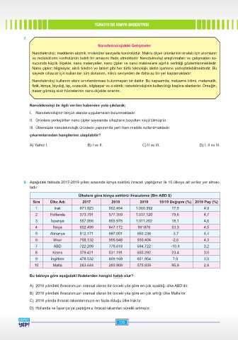 8. Aşağıdaki tabloda 2017-2019 yılları arasında kimya sektörü ihracatı yaptığımız ilk 10 ülkeye ait veriler yer almak-