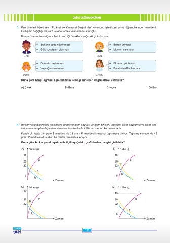 3. Fen bilimleri öğretmeni, ‘Fiziksel ve Kimyasal Değişimler’ konusunu işledikten sonra öğrencilerinden maddenin