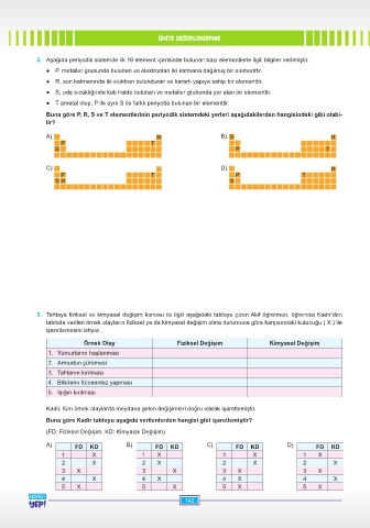 Buna göre P, R, S ve T elementlerinin periyodik sistemdeki yerleri aşağıdakilerden hangisindeki gibi olabi-