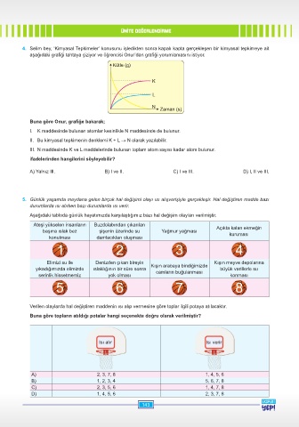 5. Günlük yaşamda meydana gelen birçok hal değişimi olayı ısı alışverişiyle gerçekleşir. Hal değiştiren madde bazı
