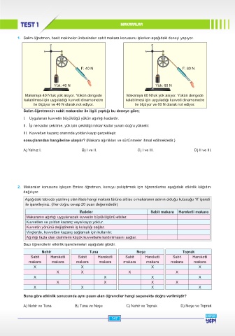 1. Salim öğretmen, basit makineler ünitesinden sabit makara konusunu işlerken aşağıdaki deneyi yapıyor.