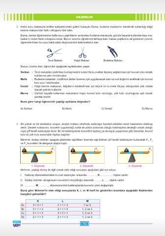 III. ………… M ………… düzeneklerdeki kaldıraçlarda kuvvetin yönü değişmiştir.