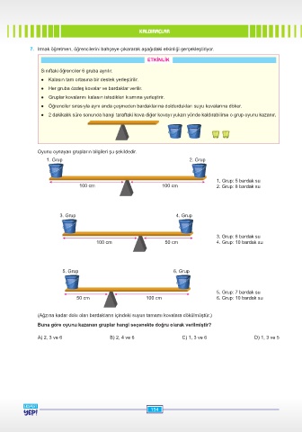 ● Her gruba özdeş kovalar ve bardaklar verilir.