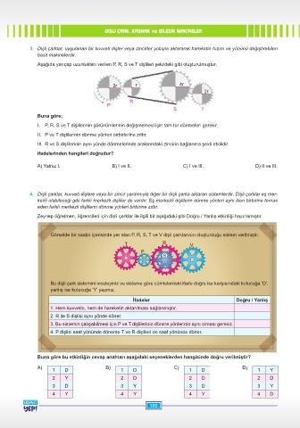 Bu dişli çark sistemini inceleyiniz ve sisteme göre cümlelerdeki ifade doğru ise karşısındaki kutucuğa ‘D‘,
