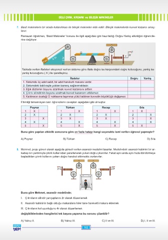7. Basit makinelerin bir arada kullanılması ile bileşik makineler elde edilir. Bileşik makinelerde kuvvet kazancı amaç-