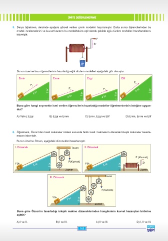 Buna göre Özcan’ın tasarladığı bileşik makine düzeneklerinden hangilerinin kuvvet kazançları birbirine