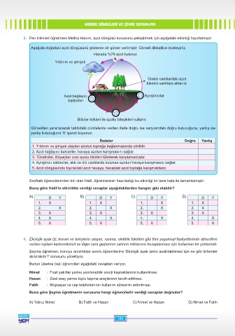 3. Fen bilimleri öğretmeni Meliha Hanım, azot döngüsü konusunu pekiştirmek için aşağıdaki etkinliği hazırlamıştır.