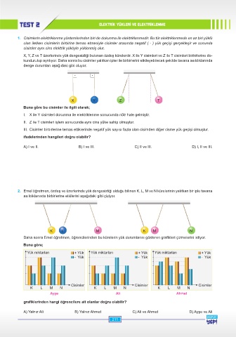 TEST 2 ELEKTRİK YÜKLERİ VE ELEKTRİKLENME