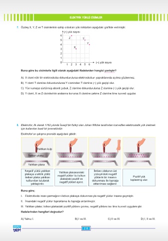 7. Özdeş X, Y, Z ve T cisimlerinin sahip oldukları yük miktarları aşağıdaki grafikte verilmiştir.