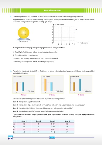 4. Fen bilimleri öğretmeni, özdeş Z, P ve R cisimlerinin üzerlerindeki yük miktarları arasındaki ilişkiyi gösteren grafikleri
