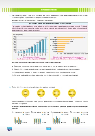 7. Fen bilimleri öğretmeni, proje ödevi olarak Ali’ den elektrik enerjisi üretiminde jeotermal kaynakların kullanımı hak-