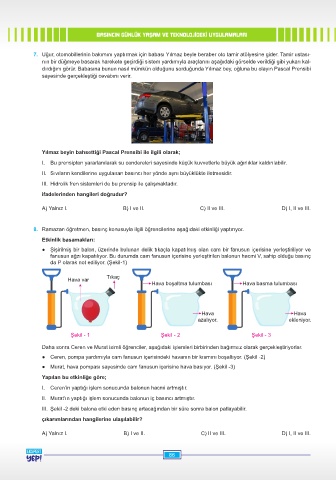 ● Murat, hava pompası sayesinde cam fanusun içerisine hava basıyor. (Şekil -3)