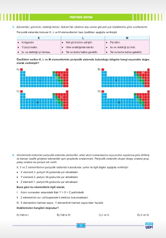 X, Y ve Z elementlerinin periyodik sistemde bulundukları yerler ile ilgili bilgiler aşağıda verilmiştir.