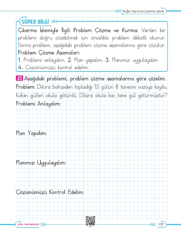 23 Aşağıdaki problemi, problem çözme aşamalarına göre çözelim.