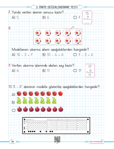 9. Verilen çıkarma işleminde eksilen sayı kaçtır? 17