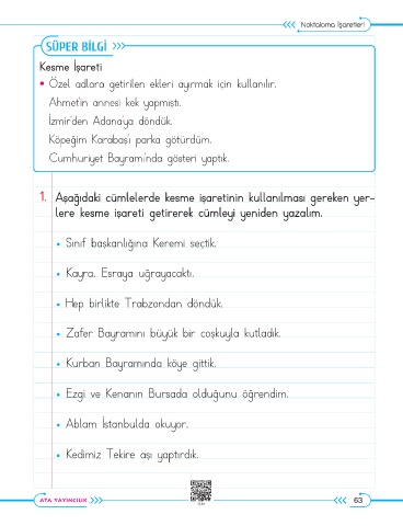 Page 63 - ATA YAYINCILIK 1. Sınıf Gıcır Gıcır Türkçe