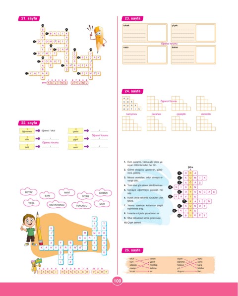 5. Aşağıdaki kelimelerin çağrıştırdığı iki kelimeyi örnekteki gibi karşılarına yazalım. 10. Aşağıda tanımı yapılan kelimeleri, verilen ipuçlarından yararlanarak bulmacada uy-