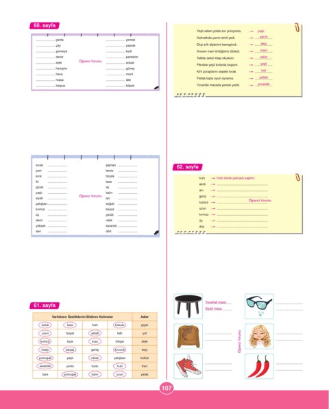 sıcak ...................... şişman ...................... 5. Aşağıda verilen varlıkların özelliklerini bildiren kelimeleri kullanarak örnekteki gibi