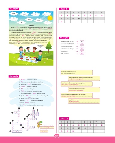 bildiren kelimelerden uygun olanları yazalım. Metni yeniden okuyalım. Test - 9