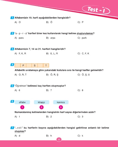 5 “Öğretmen” kelimesi kaç harften oluşmuştur?