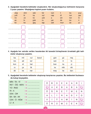 5. Aşağıdaki hecelerle kelimeler oluşturup karşılarına yazalım. Bu kelimeleri bulmaca-