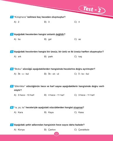 2 Aşağıdaki hecelerden hangisi anlamlı değildir?