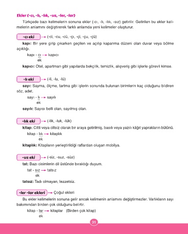 Ekler (-cı, -lı, -lık, -sız, -ler, -lar)