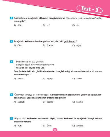 1 Göz kelimesi aşağıdaki eklerden hangisini alırsa “Gözetleme işini yapan kimse” anla-
