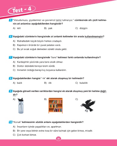 9 Aşağıda görseli verilen varlıklardan hangisi ek alarak oluşmuş yeni bir kelime değil-