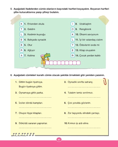 6. Aşağıdaki cümleleri kurallı cümle olacak şekilde örnekteki gibi yeniden yazalım.